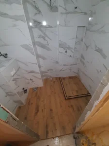Pre samog lepljenja pripremam površinu tako da podloga bude izravnjana da bi mogla da se uradi kvalitetna izolacija poda i tuš kabine .