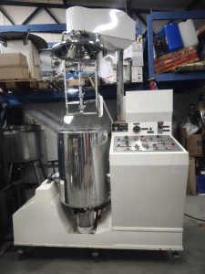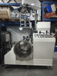U ponudi je kao NOV profesionalni industrijski vakuum homogenizator zapremine 100 lit za proizvodnju svih vrsta krema, masti, putera, gelova, emulzija, suspenzija itd. Proizvođač Dumek Italija (sadašnji Marchesini), jedan od najvećih proizvođača mašina i opreme za farmaceutsku, kozmetičku i prehrambenu industriju. Posuda je od nerđajućeg čelika Inox-a kvaliteta AISI 316L, kao i mešač i alat za homogenizovanje. Mašina poseduje elektično podizanje poklopca na kome je glavni mešač, kao i električni motor za kipovanje mase iz posude. Takođe ima mogućnost vakuuma, grejanja, hlađenja, senzora temperature unutar posude itd. Kompletna dokumentacija je u sastavu mašine, šeme automatike / struje, kao i uputstvo za rukovanje. Stanje je perfektno, bez ulaganja.