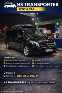 NS TRANSPORTER- BEOGRAD, nudi Vam mogućnost iznajmljivanja vozila sa ili bez vozača, kapaciteta od 7+1 i 8+1 mesta.